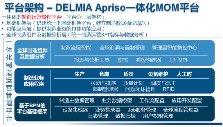 新一代MOM制造运营管理平台 — 带您体验智能制造能力新功能达索系统DELMIA Apriso 2018是一个全球制造平台,可将计划系统与制造运营同步。Apriso与企业资源规划(ERP)系统同步,以提高可见性和控制。 阅读更多